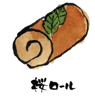 生地には刻んだ桜の葉を練り込み、中のクリームはマスカポーネと生クリームを混ぜ合わせたnewクリーム。一緒にさくら色のわらび餅を巻きました。 さくら色のわらび餅は、ロールを切った時に「桜の花びら」をイメージしてあります。 |